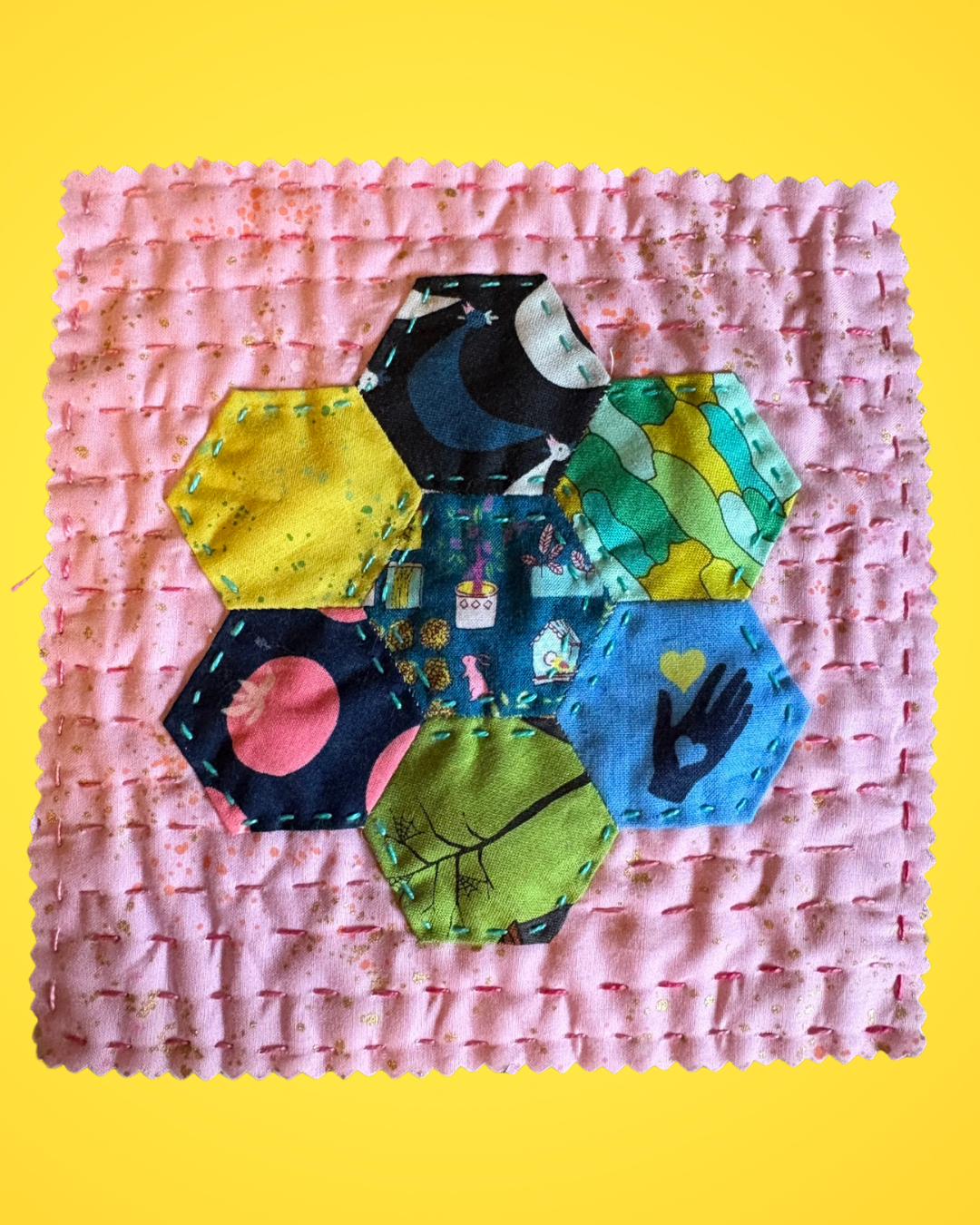 Learn this fun, easy, and very portable quilting technique while making the most adorable little mug rug ever! We'll talk tips and tricks, best practices, and how to use your sweet little hexagons in so many ways!